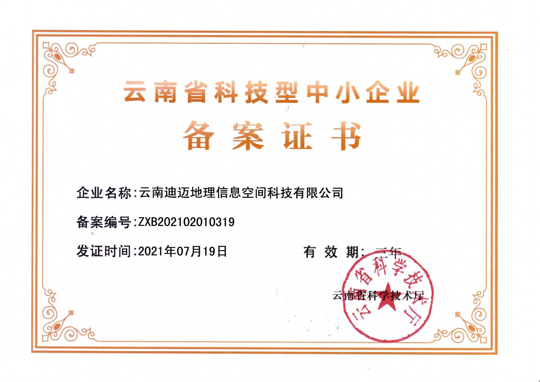 云南省科技型中小企业(云南迪迈地理信息空间科技有限公司)